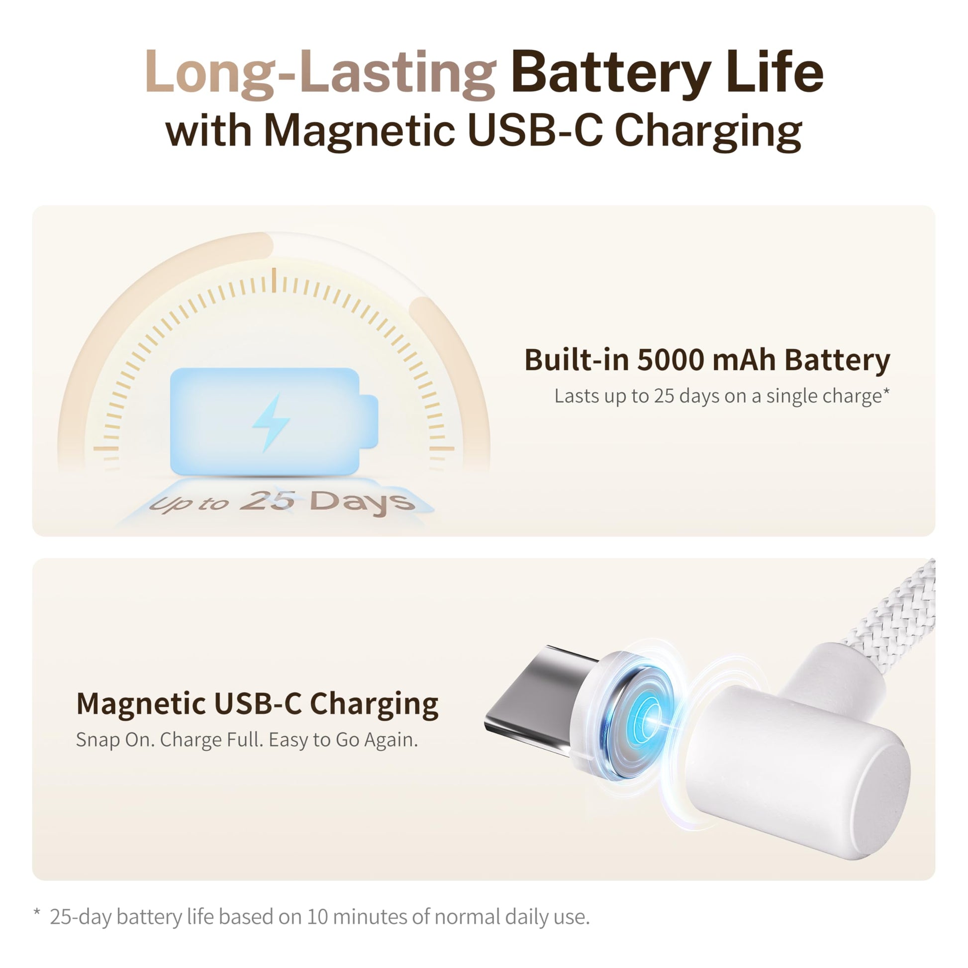 🔋 Batteriebetrieb & Magnetisches USB-C-Laden: