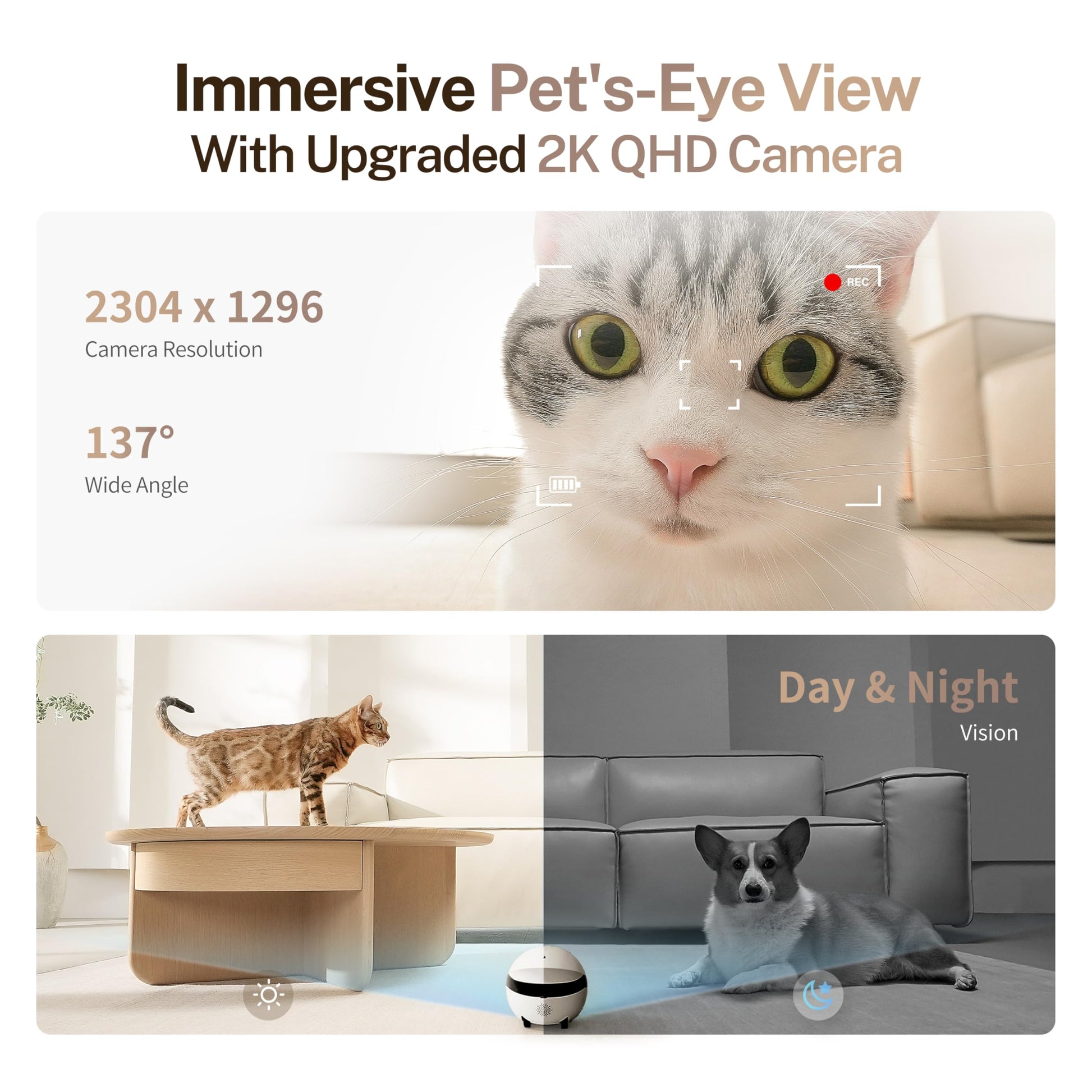 Mit dem ROLA Mini Roboterkamera erlebst du die Abenteuer deines Haustiers direkt zu Hause! Mit einer beeindruckenden 2K-Auflösung liefert die Kamera klare und scharfe Bilder für jedes niedliche Moment. Lass den Roboter fahren und entdecke die Welt aus der Perspektive deines Haustiers – in Echtzeit!